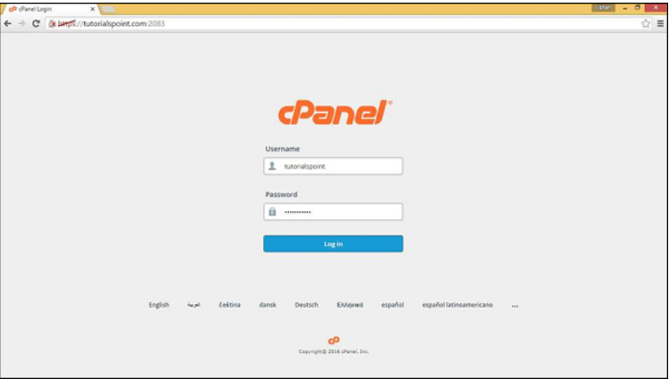 You can enter the Username and Password and press the Log in button to login into the cPanel Dashboard.