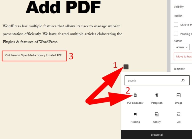 • On the next page, click over + Add icon and then select PDF Embedder(Refer to below given image)