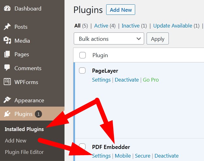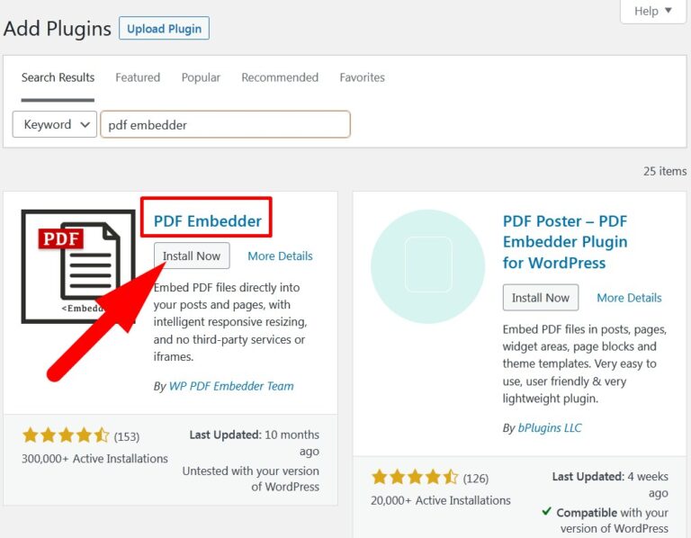- In the search bar, type pdf embedder. List of Plugins will appear.