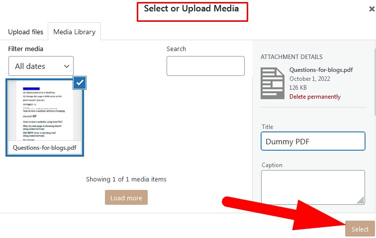 - Select or Upload the PDF file which you want to add.