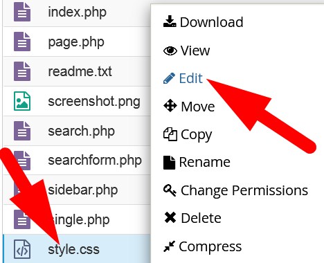 • Inside the directory, find style.css file.
