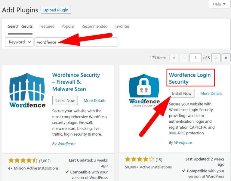 - Click over Install Now to install Wordfence Login Security as directed in below image to install the plugin.