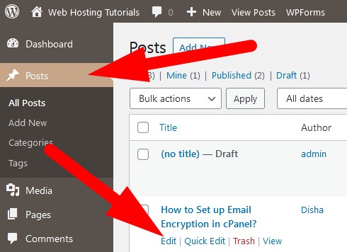 - From the WordPress dashboard, scroll to Posts or Page section from where you want to disable comments.