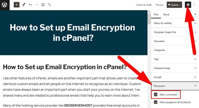 - You will be directed to the post editor page. Click over Settings icon and scroll down to Discussion section.