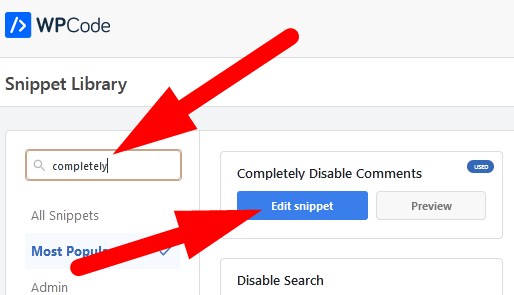 - On the Snippet Library page, search for completely disable and you will find Completely Disable Comments option.