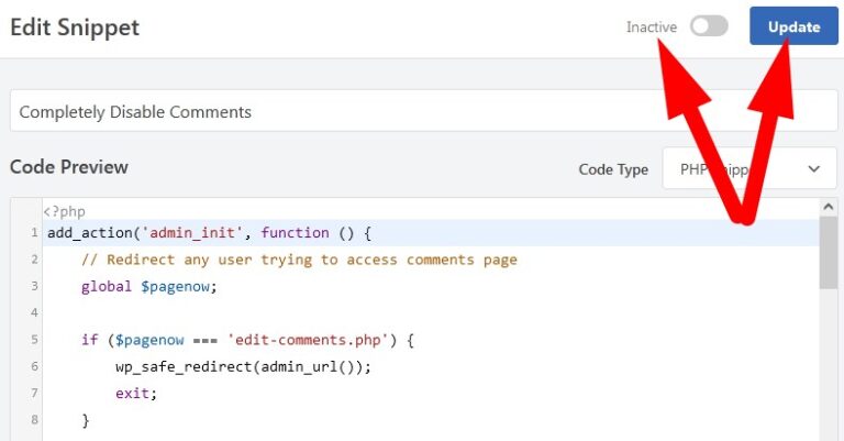 Now, WPcode will disable all comment related features from your WordPress website.